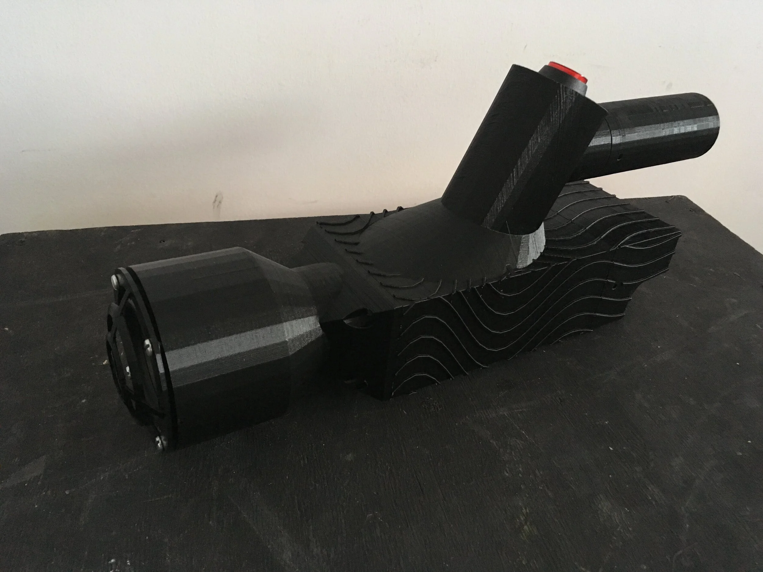The unique case designs (modeling by @chasev) draw their visual inspiration from sci-fi spoofs of the 80'‘s and 90’s. It is 12v rechargeable and capable of high volume.